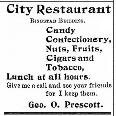 City Restaurant in the Ringstad Building, run by George O. Prescott