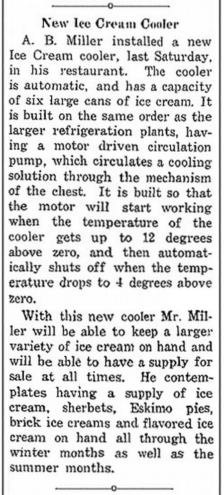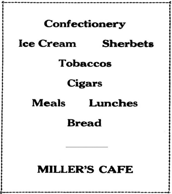 Miller's Cafe ad - see article below \/