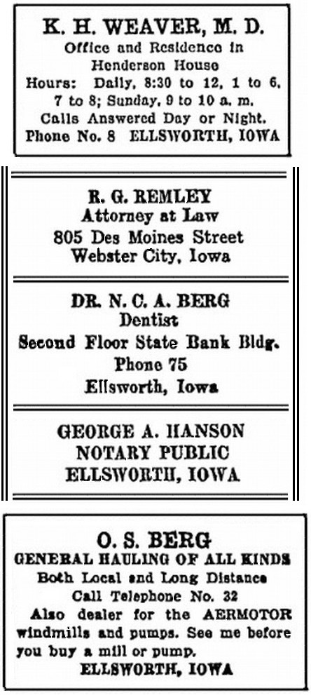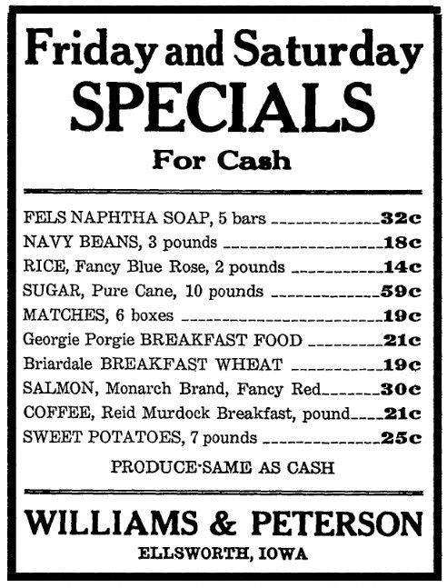 These were advertisements published in the October 22, 1931 edition of the Ellsworth News. |