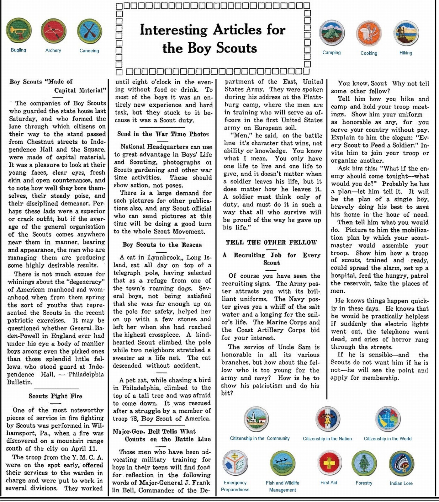 Because Ellsworth started a Troop of Boy Scouts, Interesting Articles for Boy Scouts were published.
