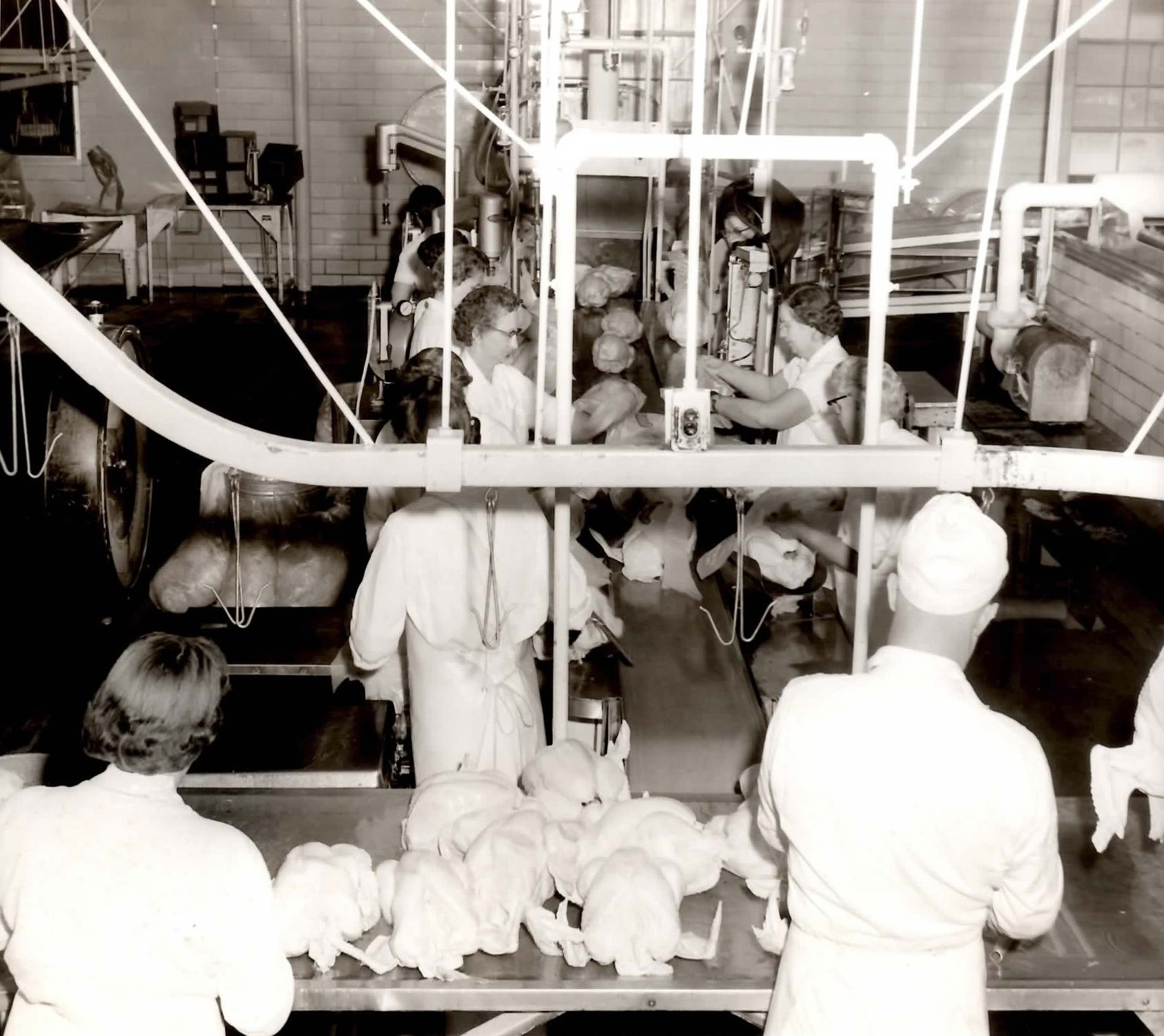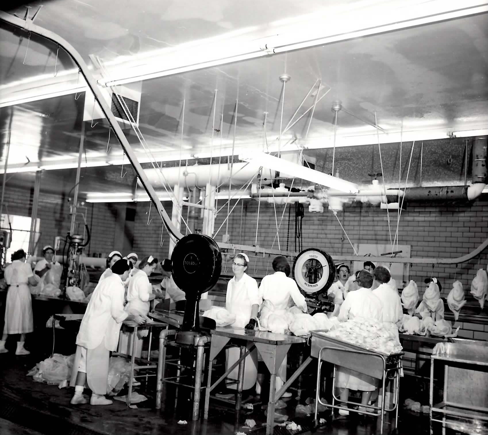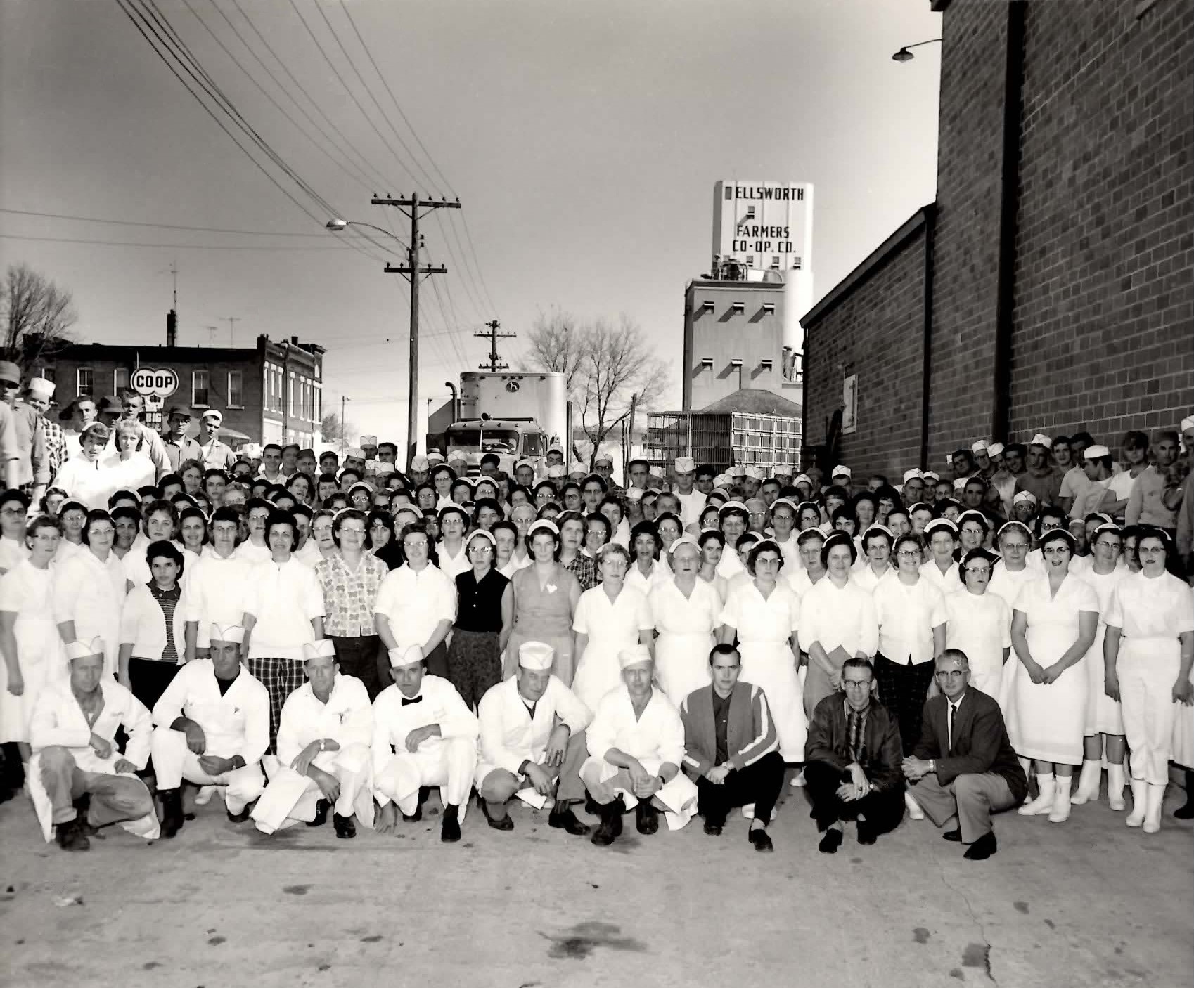 At the height of the operation, 180-270 employees were hired with an annual payroll of around $1,000,000 annually. That did not include management and the office staff. On November 22, 1963, the Miami Florida News published on the front page (in addition to the headline "President Kennedy Shot") these bits of news relating to the time of Thanksgiving: From this self-proclaimed turkey capital of the world, comes a strange sound about this time every year. The "gobble gobble" is from a million and a half turkeys being processed for the Thanksgiving and Christmas dinner tables of the nation. Fields near this central Iowa community are black with turkeys, Ellsworth (population 493) is hiring more than 250 persons in the cooperative processing plant.