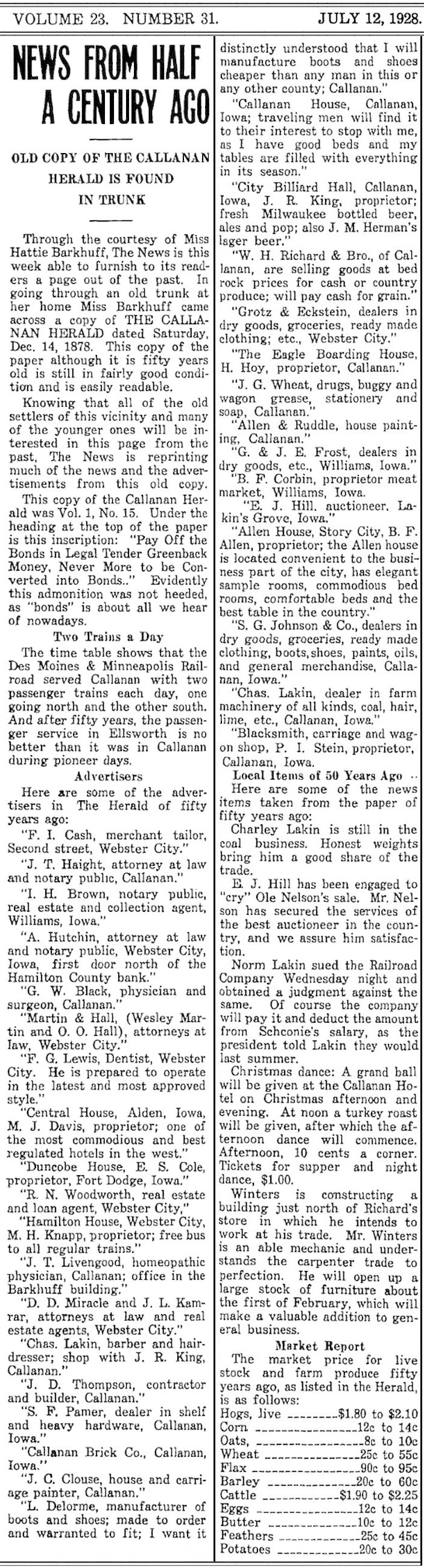 farther west of the Skunk River, going to Webster City, missing Callanan