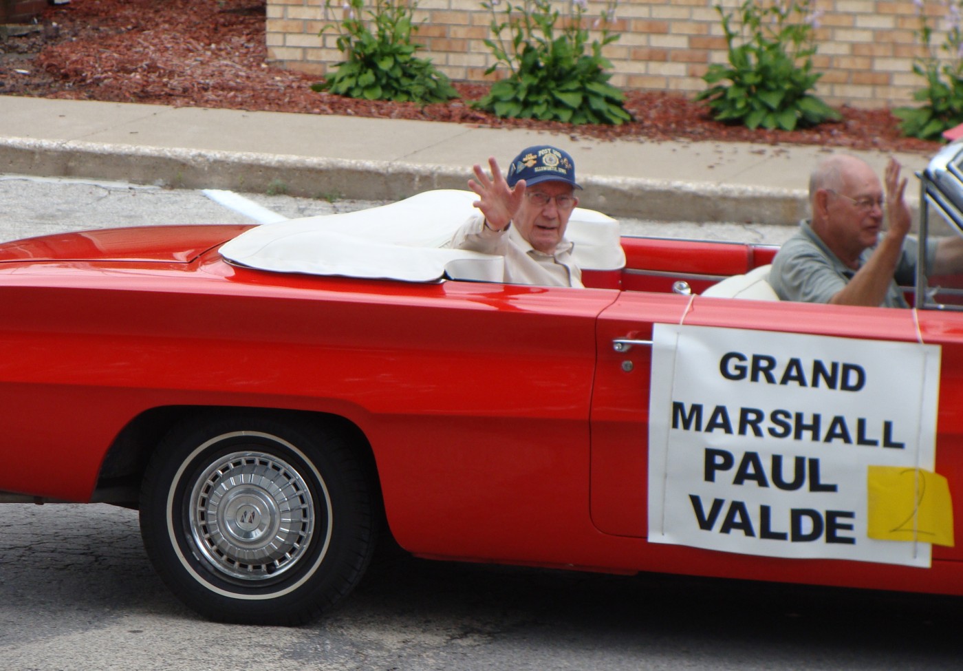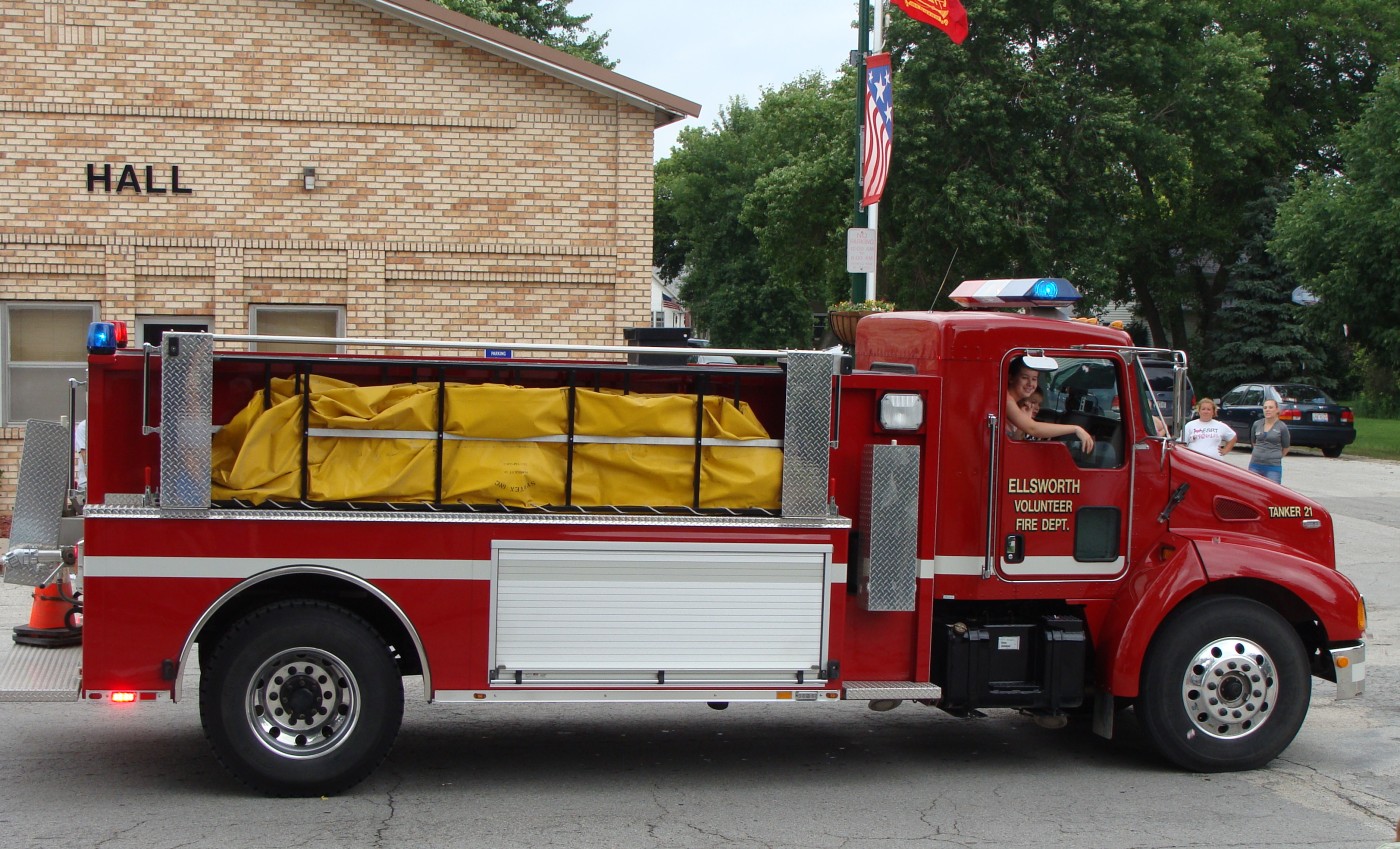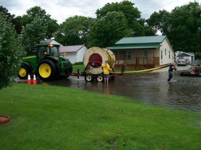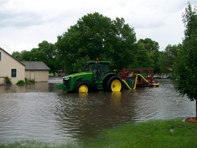 the parade The Library was showing the new window that now says, "Ellsworth Historical Museum." Paul Valde was the Grand Marshall of the 2014 parade. The Ellsworth Volunteer Fire Department was out in force, showing good equipment. By Sunday afternoon, these same trucks were on the street again, but not for another parade. Instead, it was for another flooded town. The rain had put the park under water, and a number of streets were too wet to be travelled. The city fire department pumpers were pumping water through the fire hoses to get it east of town. the water