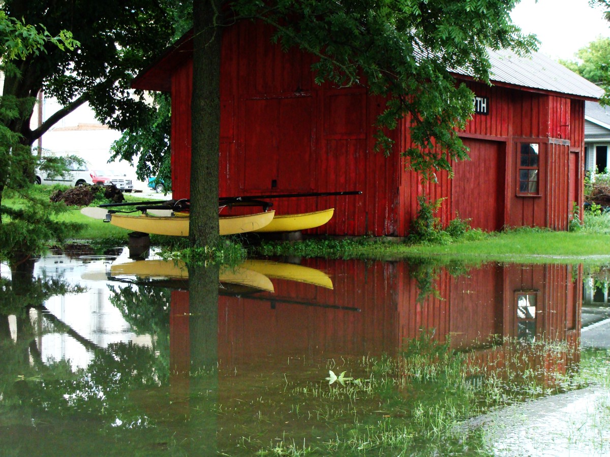 A common scene following the "water extravaganza." The sailboat seen parked by the old Callanan/Ellsworth Depot looks ready to float without being hauled to a lake.