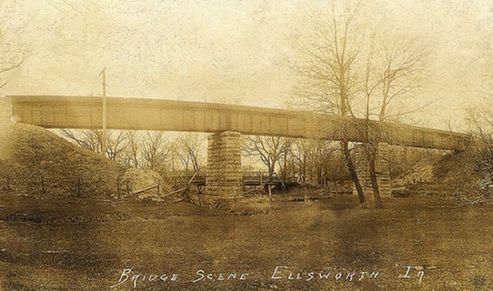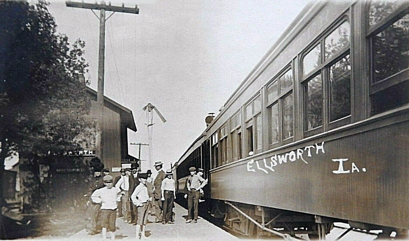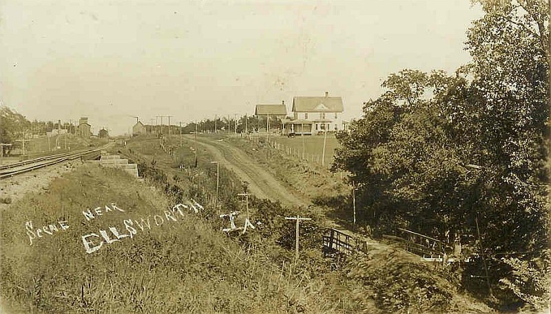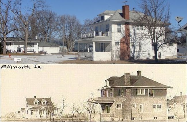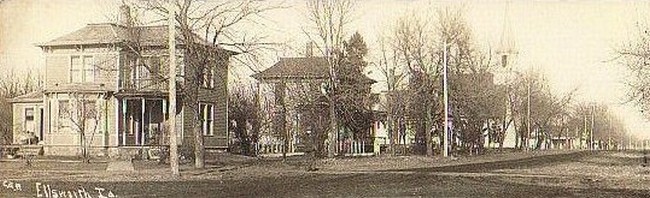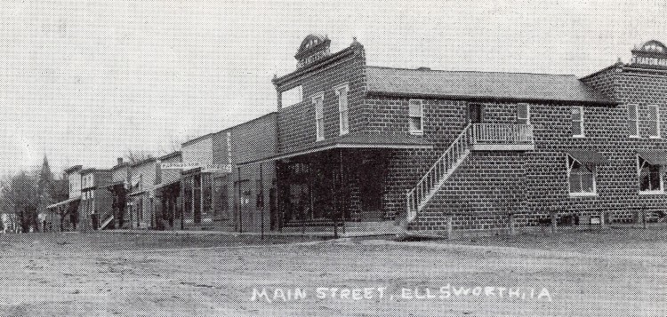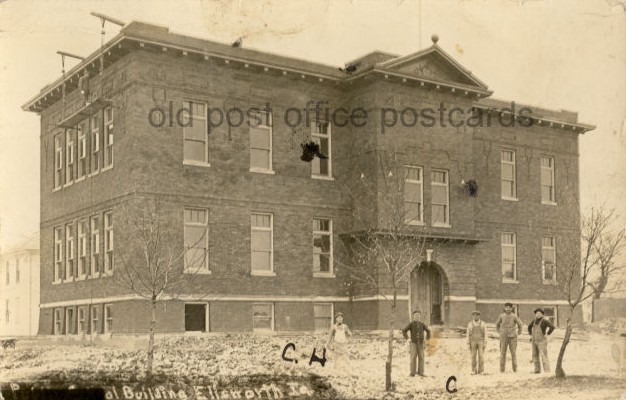 The brick Grade Schoolhouse was built next to the frame schoolhouse in 1913. This was on the West side of the street. After the High School brick building (seen on the next page) was built across the street in 1916, this school served students in the first six grades. This schoolhouse later (until 1973) served as the grade school building for the Ellworth students in the South Hamilton School District.