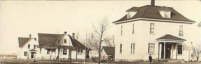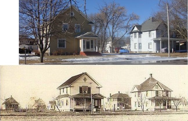 Note the old frame school is visible at left in the background of this image. It was moved shortly after this school was constructed. It was split into two parts to became two residences, one on each side of the street a half block north of this brick school.