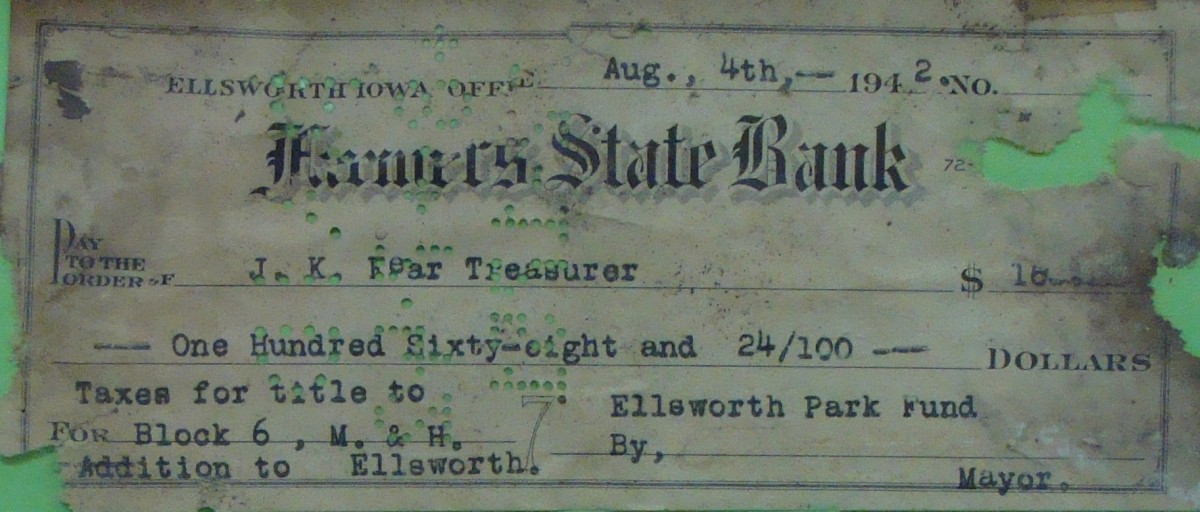 the Ellsworth Park with one check (seen above). Mr. Snow, a former
