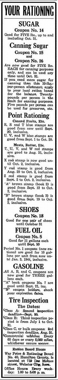 Sugar ration dates at Ellsworth are as follows:
