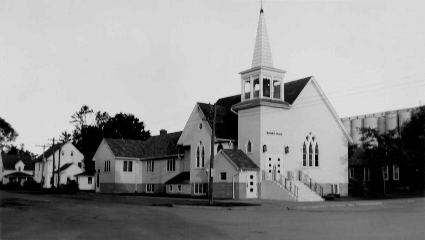 This 1961 image shows the front of the Ellsworth United Methodist Church. Image from July of 1961 This completes the north end of the "Ellsworth Business District" looking East.