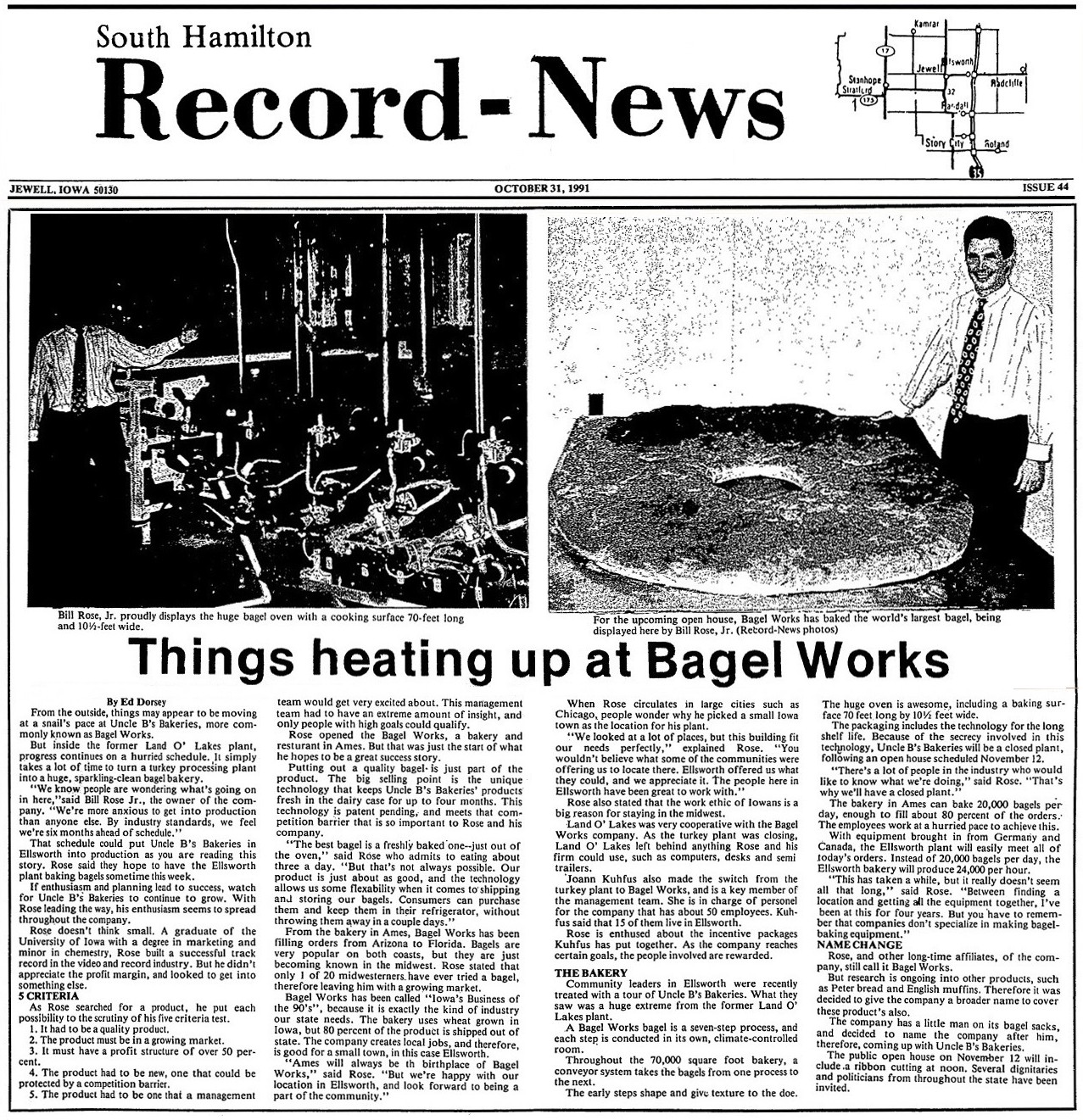 Here is a news article about The Bagel Works from October 31,1991: Click on the article if you wish to read about Uncle B's Bagel Works